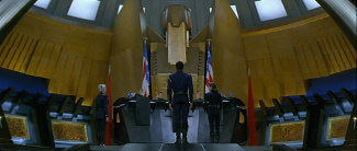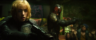A force de chercher un aspect brut de décoffrage, Garland donne l’impression d’omettre les spécificités de la bande dessinée. On ne se plaindra certes pas qu’il refuse un ton purement second degré (même si il y a ici et là des touches d’humour décalées). Mais il se débarrasse également de toutes interrogations autour de cette justice sur pattes. En fait, Garland réclame une sorte de simplicité héritée du western où le propos n’est pas asséné mais contenu au travers du comportement et des actes des personnages. C’est ainsi que transparaît le côté facho du personnage qui n’hésite pas éliminer sans scrupule les truands dès que les codes de loi le lui permettent. De même, cette frontière perméable entre juge et criminel est mise à mal lorsque chaque système confronte ses pouvoirs. Allant procéder à une arrestation, Dredd lance un enregistrement vocal invitant les citoyens à laisser le juge appliquer la loi et à ne pas interférer sous peine de condamnation. Plus tard, la matrone du gang lance un appel similaire en invitant les habitant de l’immeuble à participer à la chasse aux juges et à ne surtout pas les secourir sous peine de représailles. Un parallèle quelque peu perturbant puisque ramenant les méthodes des représentants de l’ordre au niveau des renégats qu’ils traquent.