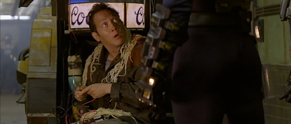 Toutefois, malgré le remaniement de ces intrigues, la production veut clairement insérer ici et là l’humour second degré, ne serait-ce que pour démontrer un peu plus son respect au matériau d’origine. La volonté d’élever le débat à un nouveau niveau ne peut fonctionner si on réutilise les mêmes arguments qu’auparavant. En soit, la scène d’ouverture montre pourtant un jeu d’équilibriste plutôt bien entretenu mais qui ne se maintiendra pas par la suite. Entendre Dredd lâcher des « cette pièce est pacifiée » après avoir zigouillé l’intégralité des occupants ou répliquer à des critiques sur ses méthodes « émotion ? Cela devrait être interdit par la loi » sont des piques savoureuses tout droit sorties du comics et fonctionnant correctement dans la manière dont l’univers est dépeint. Cette intégration de l’humour devient plus envahissante et moins pertinente dans la suite de l’intrigue. Comme dans le comic, Dredd se retrouve affligé d’un sidekick en la personne d’un pauvre arnaqueur nommé Fergie et incarné par l’improbable Rob Schneider. Un personnage et un acteur absolument insupportables tels que pouvaient l’être ses homologues papiers. Sauf que Fergie a une fonction comique premier degré. Comme expliqué précédemment, les sidekicks de la BD sont médiocres pour critiquer leur utilisation opportuniste. Fergie, lui, est censé être drôle pour offrir (d’un point de vue théorique) le quota de rires nécessaire à un divertissement standard. Une incompréhension qui indique clairement la problématique de ton. Plus que certaines concessions dont la plus évidente est de montrer Dredd sans son casque (on ne paye pas une star comme Stallone pour ne pas la voir à l’écran), c’est ce désir de brasser large qui coule le film et révèle sa véritable nature. En refusant d’intégrer les fondamentaux du comic mais en y piochant un maximum, l’adaptation affiche son regard purement consensuel et étale son absolu désir de policer le sujet. Les choix narratifs qui pouvaient aboutir à de vraies réflexions ne transparaissent plus que comme des astuces faiblardes pour satisfaire le plus grand nombre et ne pas trop bousculer les mentalités. Le manque de maturité de Cannon et son inexpérience pour composer avec le studio constituent très probablement la pierre angulaire de la débâcle.