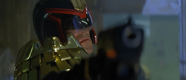Tout novice qu’il est, Danny Cannon veut rendre justice à son personnage de comics préféré. D’emblée, il refuse que le film se contente d’un argument de film noir dans le futur et devienne un Arme Fatale version SF. Gardant en tête les dessins du comic où l’action pouvait s’étaler sur des doubles pages surchargés de détails, il envisage quelque chose d’épique dans l’esprit du péplum. Or qui dit grandeur, dit gros sous. Qui dit gros sous, dit retour sur investissement impératif. Qui dit retour sur investissement impératif, dit prise de risque minimisé. Qui dit prise de risque minimisé, dit grosses emmerdes à venir pour une adaptation de cet acabit. Car il est difficile de ne pas prendre de risque avec un personnage aussi volontairement ambigu que Dredd. La valse des scénaristes en est bien la preuve. Au bout du compte, trois scénaristes sont officiellement crédités au générique : l’inégal Michael De Luca (L’Antre De La Folie mais aussi La Fin De Freddy), l’énigmatique Steven E. De Souza (l’homme derrière Piège De Cristal mais aussi Commando, Hudson Hawk et Street Fighter) et le discret mais compétent William Wisher (Terminator 2, Le Treizième Guerrier). En fait, il est assez fascinant de voir comment ces trois scénaristes symbolisent la pluralité de l’œuvre. On pourrait ainsi spéculer sur l’attribution des différents aspects du produit final.