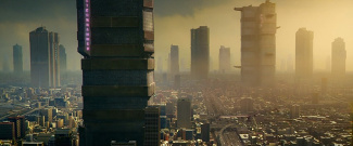 Avec son exploitation ludique de l’environnement (rendant ainsi le long-métrage bien plus divertissant que The Raid auquel il fut souvent comparé), Dredd marche selon des principes avant tout fonctionnels. Cette quête de fonctionnalité régit également la réalisation. Mega City One n’évoque plus une cité extravagante à la hauteur vertigineuse mais une ville décrépite s’étendant jusqu’à l’horizon. Le personnage titre n’a plus ses prestigieux ornements mais une combinaison pratique et près du corps. La musique ne s’embarrasse pas d’opulente marche martiale et fait dans le matraquage auditif efficace mais dénué d’identité. Quant à l’interprétation de Karl Urban (demeurant masqué sur tout le film), il opte pour des intonations graves à la Clint Eastwood l’empêchant de pousser trop fort le volume de sa voix (et donc de présenter le personnage comme un hystérique fou-furieux). La mise en scène même est directe et ne s’embarrasse pas de grands effets à l’exception de quelques longs ralentis lorsque les personnages ingèrent la drogue au cœur de l’intrigue. Une utilisation esthétique que Garland justifie comme le seul moyen pour le peuple de XXIIIème siècle de rendre beau une réalité qui ne l’est aucunement.