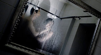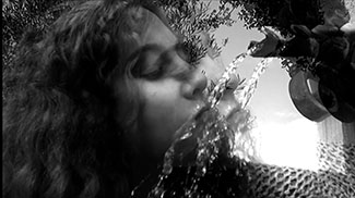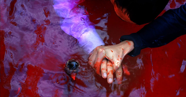 De plus, la 3D ne se limite pas dans Adieu au langage aux agissements d’un laborantin désireux de tenter l’absolu pour son dernier essai. De façon plus large, elle contribue aussi à renforcer la poésie de l’image filmée, y compris dans de simples plans captés à travers un caméscope ou un écran d’iPhone – il n’y a qu’à voir comment les feuillages et les paysages, cadrés à travers des perspectives obliques ou des grands angles déformants, arrivent ici à dégager une vraie poésie, inédite et furtive. Parce que le choix du relief, censé favoriser le rendu sensitif des différentes échelles de plans, ne va pas ici sans donner la sensation de voir l’écran se brouiller, se liquéfier, telle une toile peinte qui finirait par faire se mouvoir les couches de peinture qui la composent. Le liquide est d’ailleurs au centre même des plans les plus étonnants à visualiser en 3D : des jets de lave-glace sur un pare-brise, des trombes de pluie qui s’abattent sur une autoroute, une femme buvant l’eau qui s’écoule d’une fontaine, une autre femme lavant ses mains dans une source recouverte de feuilles mortes, ou encore les gouttes d’eau sur la baie vitrée d’une cabine de douche. L’eau est donc ici un élément de relief à part entière qui donne au film son propre « relief », infusé en sourdine dans chaque scène (voir ces plans répétés de bateau qui vogue sur le lac Léman) ou ouvertement désigné comme territoire d’expérimentation (regardez l’affiche du film).