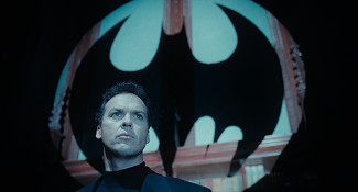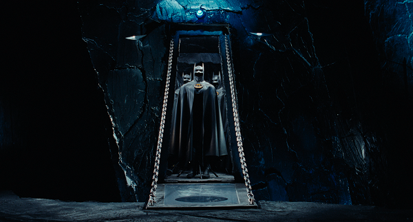 Que retenir du premier Batman, sorti en 1989 ? D’abord quelques mauvais aspects, essentiellement dus à des effets de mode ridés jusqu’au craquèlement – c’est peu dire que les chansons de Prince ont très mal vieilli – ou à une certaine timidité de Tim Burton dans les scènes d’action – chacune d’elles restait alors au seuil de ses possibilités opératiques. Pour autant, l’indéniable réussite du film, qui plus est amplifiée par une méga-sortie qui fit date dans les arcanes d’Hollywood et de la Warner, tenait sur une idée de génie : fondre la création originale de Bob Kane dans un univers burtonien déjà très identifié en seulement deux films, et ce à des années-lumière de cette grotesque approche campy qui caractérisa la série télévisée avec Adam West. Du coup, bye-bye les gesticulations de guignols costumés qui se croient chez Bouglione, adieu le kitsch de spectacle de maternelle et les onomatopées à foison, et place à un Gotham City décadent, mortuaire, rongé par le crime et shooté comme une métropole gothique, où se déroulait un savant jeu de cache-cache avec masque et/ou maquillage. L’homme chauve-souris n’y était même pas vraiment le super-héros du comics d’origine, mais plutôt un être solitaire et mystérieux, plus motivé à l’idée de se cacher que d’agiter sa présence au premier venu. Ayant capturé mieux que quiconque le côté névrosé et meurtri de Bruce Wayne, Michael Keaton n’aura pas fait que renvoyer dans les cordes tous ceux qui craignaient d’assister à un sous-Beetlejuice. Il aura surtout supplanté Burton lui-même dans l’incarnation de la composante centrale de l’univers de Batman, c’est-à-dire la dualité. Division d’un être traumatisé dans son âme et figé dans une posture par procuration, tiraillement entre le Bien que l’on incarne et le Mal que l’on combat, avec un ennemi qui devenait une sorte de miroir inversé. Incarné par un Jack Nicholson prodigieux, le Joker laissait alors Batman en retrait et prenait les rênes de ce grand bal de violence anarchique, en tant que Monsieur Loyal aussi coloré et séduisant qu’un démon. Fort d’un alliage composite de plusieurs sources artistiques (le film noir des années 40, les comic-books de Frank Miller, la critique sociopolitique, etc…), tapant même parfois dans le mille en détournant l’effet du produit de consommation courante (les jouets et les cosmétiques devenaient alors des armes mortelles), Batman avait frappé juste et conquis son public. Reste que cette réflexion sur la dualité allait à peine en-dessous de la surface, et que ce twist consistant à faire du Joker le « créateur » de Batman frisait la solution de facilité.