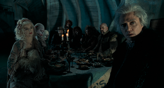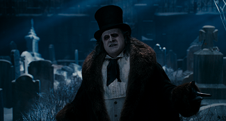 Notons enfin que Batman, le défi n’est pas seulement un film où il fait (très) sombre. C’est surtout un film où il fait (très) froid. Où le froid finit par se propager partout : les extérieurs, les intérieurs, les caractères, la neige qui tombe non-stop sur Gotham jusqu’à la recouvrir totalement, voire même cette célèbre soupe française qu’Alfred sert à Bruce Wayne ! Et où le chaud, lorsqu’il surgit, donne la très nette sensation que les choses vont se gâter – c’est en effet la « chaleur » qui tuera in fine Shreck et le Pingouin. Cet effet réfrigérant que le film réussit à propager hors de l’écran n’est pas anodin. On en revient encore à l’enfance, cette période instable dans laquelle sont restés bel et bien gelés tous ceux qui ont épousé la marge par contrainte ou par pulsion. La divagation et la confusion qui les caractérisent à visage humain disent tout du chaos qui les habite. Qu’il s’agisse d’un Oswald revenu à la surface ou d’un Selina perdue dans sa propre surface, le résultat est le même : tous s’embrouillent, divaguent, se parlent à eux-mêmes, déambulent et saccagent tout ce qui les entoure comme des gosses, et laissent parfois leur âme d’enfant prendre le dessus sur leur lucidité (voir la déclaration d’amour finale de Selina à Bruce, se rêvant en princesse d’un conte de fées !). Des adultes morts-vivants qui, une fois « ressuscités », seraient tout à coup revenus à cet âge où il faut encore trouver ses mots, apprendre à tirer profit de ces jouets tombés du ciel au lieu de les casser par réflexe, se confronter au monde en général et à l’Autre en particulier (avec le conflit et la violence comme langage premier) et éprouver l’espace pour espérer y trouver sa place. Une quête d’identité où le raisonnement humain et celui du « monstre » ne cessent jamais de se confondre, tout au long de dialogues écrits à double sens et de situations gorgées de sous-entendus redoutables. Avec, en bout de spleen, un destin tragique scellé au mieux dans l’obscurité, au pire dans la mort – les « funérailles aquatiques » du Pingouin valent bien le final d’Elephant Man en matière de climax émotionnel.