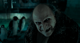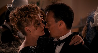 C’est d’ailleurs à l’occasion d’un bal masqué que les rôles finiront enfin par se renverser. Jusqu’ici dissimulés derrière un masque dans une ville où chacun ne cessait de circuler à visage découvert (tout en dissimulant ses intérêts personnels dans des espaces clos : réunions, immeubles, égouts, etc…), Bruce et Selina s’imposent alors comme les seuls invités non masqués de la soirée. C’est le climax symbolique du film, celui où l’innocence émerge enfin de ce vaste bain de corruption et d’idéaux trahis. Tous deux s’avouent mutuellement leur lassitude de se cacher (leurs sentiments) et finissent même par trahir leurs identités respectives au détour d’un simple échange de phrases cryptiques. Autour d’eux, la suprême hypocrisie du gratin de Gotham n’attendra pas la violente réapparition du Pingouin pour éclater au grand jour. Elle se fait plus limpide que jamais, dévoilant cette fois-ci l’envers vicieux du motif du déguisement, ici voué à refléter tout sauf l’âme réelle de celui qui le porte. Max Shreck, de son côté, est presque l’exception qui confirme la règle : jusqu’ici quasi vampirique de par son teint pâle et son obsession à « pomper le sang » de la ville (ce qui n’a rien d’étonnant quand on porte le même nom que le héros du Nosferatu de Murnau !), son costume de vizir tend à lui donner les attributs (justifiés !) d’un néo-Iznogoud ! Plus que les trois figures mi-humaines mi-animales qui s’agitent à l’extérieur, Shreck est la véritable âme noire de cette ville, sa part la plus sombre. Burton en fait l’incarnation de toutes les tares du monde contemporain : un businessman de la pire espèce, cruel, véreux, manipulateur, autant dépourvu de scrupules que de conscience écologique, et dont l’ego crève littéralement le plafond (« Croyez-vous pouvoir mettre K.O Mohammed Shreck ? »). Et pourtant, l’homme n’échappe pas non plus à la dualité, ne serait-ce qu’en raison de son attachement pour son fils Chip (Andrew Bryniarski, future incarnation de Leatherface) : c’est en effet pour assurer l’avenir de ce dernier (et non pour s’enrichir personnellement) qu’il s’adonne à l’illégalité et aux actions polluantes. Son sacrifice final – échanger la place de son fils contre la sienne en tant que prisonnier éternel du Pingouin – révèle une part d’humanité à ne pas laisser de côté. Encore et toujours ce principe très burtonien qui guette la plus infime trace de lumière sous une chape de noirceur.