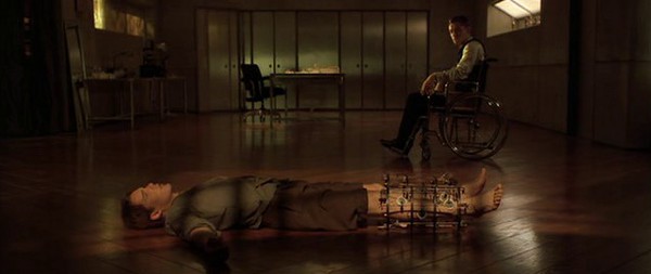 De manière plus générale, le corps est placé au cœur de nombreuses séquences. Parce qu’en plus de Vincent qui se sert du sien comme outil de sa supercherie, il y a aussi Irene, la collègue avec laquelle il débute une relation et qui se sent inférieure aux autres en raison d’une insuffisance cardiaque, et bien sûr Jérôme Eugène Morrow (noté son deuxième prénom, où le mot gène est encore là), son complice, paraplégique. Tandis que la perte de souffle de la jeune femme décuple l’intensité d’une scène de course-poursuite, l’handicap de Jérôme sert le beau suspense d’un passage où l’inspecteur de police vient vérifier la présence de Vincent/Jérôme chez lui, et où Jérôme doit monter en rampant les escaliers menant à sa chambre, où il est censé être convalescent… Ces corps que la société dans laquelle ils évoluent considère comme défaillants n’ont qu’à être présents dans le champ, confrontés les uns aux autres, pour que se dégage des images un sens, une dénonciation des absurdités du « système GATTACA ». Il y a ce passage où, suite à une horrible opération destinée à alonger ses jambes de quelques centimètres afin de faire exactement la même taille que Jérôme, Vincent est allongé près de celui-ci, avec un dispositif métallique qui n’aurait pas grand-chose à envier à l’appareil de contention avec lequel évoluait le personnage de Rosanna Arquette dans Crash de Cronenberg. La construction de l’image suffit à souligner le fait que Vincent doive descendre « plus bas » que Jérôme pour espérer usurper l’identité de celui-ci et connaître ainsi un changement de statut social. L’absurdité, c’est celle de l’enjeu : quelques centimètres, pas plus. Tout ça pour ça.