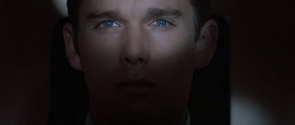 Le suspense, ainsi, tient largement au corps du personnage central. La petitesse des facteurs qui entrent en ligne de compte n’empêche pas ceux-ci de faire basculer toute l’intrigue. Car les cils que Vincent peut perdre à tout moment et n’importe où en se frottant l’œil sans même y penser ne passeront assurément pas au travers des détecteurs ultra-performants des forces de l’ordre et des aspirateurs que celles-ci utilisent pour récolter le plus petit des indices sur une scène de crime. A noter que dans la version originale, les policiers sont justement surnommés les « hoovers », en référence à la fois à ces aspirateurs (« hoover » en anglais) et au dirigeant mythique de la CIA, J. Edgar Hoover, interprété par Leonardo DiCaprio dans le nouveau film de Clint Eastwood, J. Edgar. En s’attachant ainsi au corps, Bienvenue à Gattaca redécline et pousse à son extrême un motif récurrent de la SF, d’autant plus glaçant que l’on sait bien que nos sociétés n’y échapperont pas : la surveillance maximale, ou du moins la possibilité de sa mise en œuvre. Ici, l’appréhension par les autorités de l’espace et des informations qu’il contient est décuplée par les technologies mises à leur service. De sorte que les personnages sont leurs empreintes, leurs poils, leurs peaux mortes, leurs cils, etc. Et presque rien de plus – c’est là l’aberration contre laquelle Vincent se révolte. Il suffit d’un échantillon dérisoire de son corps pour dire de lui la seule chose qui a une importance aux yeux de la société dans laquelle il vit : s’il est « Viable » ou « Non-Viable ». Ainsi, les plus grands moments de suspense du film et/ou de panique du personnage sont engendrés par ces détails qui n’en sont plus : un cil de perdu qui peut fonder toute une suspicion, un contrôle d’identité pour lequel Vincent doit se débarrasser de ses lentilles de contact colorées, quitte à risquer la mort quelques minutes après en traversant une voie rapide qu’il voit trouble, ou encore des cheveux laissés dans le lit de son amante après qu’ils ont fait l’amour !