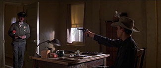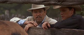Tout n’est qu’incertitude. Le voyage en compagnie de Blevins met surtout l’accent sur la manière dont il fait ressortir le comportement enfantin des deux protagonistes. Il est mis de côté leurs agacements qui pourraient les rendre désagréable. Choix d’adaptation de Thornton pour mieux rendre cinématographiquement la relation des protagonistes ou conséquence de l’éviction d’autres séquences ? Le passage en prison semble lui aussi avoir subi des coupes, accélérant ce passage en enfer pour revenir plus rapidement à la romance. Le personnage du chef criminel en fait les frais. Sa longue et perturbante discussion avec le héros disparaît. Mais est-ce que Thornton n’aurait pas lui-même réduit volontairement le personnage à une figure silencieuse et énigmatique ? Même chose avec la conclusion. L’histoire s’achève désormais sur les retrouvailles de Grady et Rawlins. Suivant tout juste la scène du juge déclarant que tout ira bien pour Cole, cette fin ferme le film sur un sentiment d’apaisement. Si le studio doit être ravi de de ce choix par rapport à la note déprimante du roman, rien ne dit que de son côté Thornton a conservé le plan dans le soleil couchant.