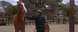 Gagnant un emploi dans un ranch, ils vivront un temps de leur labeur. Sous l’admiration de tous, il capture et débourre des chevaux à longueur de journée. Il reste donc aveugle à l’envers du rêve. Leur travail consiste littéralement à dompter des chevaux sauvages pour qu’ils soient montés, soit de les priver de la liberté qu’ils ont eux-mêmes si recherchée. Leur talent et respect pour l’animal n’enlève rien à ce fait. Grady aura la même inconscience lorsqu’il s’engage dans une histoire d’amour avec la fille du propriétaire. Il a beau se dire lucide sur l’impossibilité de la romance, il y persiste en croyant que son mérite lui permettra d’aller à l’encontre de l’ordre sociale. Bien sûr, McCarthy les fait ensuite passer dans l’envers du rêve. L’herbe n’est pas plus verte chez le voisin et un monde de lumière sous-entend forcément l’existence d’un monde de ténèbres. La réapparition de Blevins sonne l’heure de la révélation et sa mise à mort hors-champs entérine la fin de l’enfance.