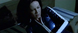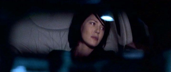 On saisit donc qu’Assayas joue continuellement de son héroïne comme d’un palimpseste à visage humain : d’abord stimulée par une lecture dialectique du monde (réfléchir, agir, contrôler), ensuite soumise à une lecture existentielle de la réalité (craindre, subir, abdiquer), Diane a cela de paradoxal qu’elle existe toujours plus en tant que personnage dès lors que son image se dissout dans un bain de scènes brouillées et fragmentées. Dans la première partie du film, son visage au teint diaphane paraît simplement troublé par les images qui font alors office de contrechamp : cette chaîne pornographique qu’elle regarde fascinée dans sa chambre d’hôtel de Tokyo, ce hentaï à la sauce Urotsukidoji – à base de nymphettes éplorées et livrées en pâture à des tentacules géantes – dont elle découvre les images avec Hervé lors d’une visite dans les ateliers de production de l’entreprise TokyoAnimé, etc… Peu après, au terme d’une scène de vol de documents confidentiels où elle escalade la façade d’un immeuble grimée en néo-Fantomette à la combinaison moulante (on repense alors à la Maggie Cheung d’Irma Vep), c’est le black-out brutal, le trou noir intégral. Changement radical de parti pris : Assayas amorce alors une seconde moitié de film à la Mulholland Drive où se recompose soudain une réalité plus trouble, plus indécise, avec des personnages qui évoluent dans une curieuse apesanteur psychologique. Dès lors, l’image de Diane n’aura de cesse que de se brouiller : le visage pixellisé par l’effet commun de la nuit et de la pluie lors d’une virée en voiture, le physique redéfini par la force commune de la vidéo et du fantasme (costume SM en latex, costume kitsch de Diana Rigg dans Chapeau melon et bottes de cuir, panoplie virtuelle de la Tornade de X-Men).