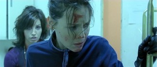 Ces images floues, durant lesquelles Assayas a de temps en temps la suprême malice de ne pas trop « faire le point » (une technique indissociable du travail du chef opérateur), sont précisément celles où le personnage de Diane devient incapable de « faire le point » (en gros, qu’est-ce qui lui arrive ?). La lecture du rêve est bien entendu chuchotée de par la dimension lynchienne des choix de découpage : le meurtre sauvage d’Elaine (Gina Gershon) a-t-il vraiment eu lieu ou n’était-ce qu’un cauchemar de celle qui pensait l’avoir commis ? L’élégance plastique des images et la chorégraphie virtuose des mouvements de caméra, toutes deux couplées à une extraordinaire bande originale composée par le groupe Sonic Youth, donnent ainsi naissance à une ambiance onirique, propice à l’annihilation de tout self-control (le spectateur lui-même est aussi visé que l’héroïne) et de la dichotomie réel/virtuel. Son intrigue de thriller étant vouée à l’effondrement programmé, Assayas fait alors de même avec son montage, enfilant les cuts secs et abrupts qui rendent les scènes volontairement hachées et incomplètes (est-ce un hasard si on a alors l’impression de zapper sur plusieurs chaînes de télé ?), usant de perspectives en lien direct avec l’espace virtuel évoqué par les enjeux du récit (voyez ce plan subjectif d’un hélicoptère qui évoque un jeu vidéo de type simulateur de vol), revêtant une esthétique dense et protéiforme où les écrans et les baies vitrées se bornent à refléter des êtres désincarnés. Le temps d’une halte a priori banale dans une station-service où Diane prend de l’essence, le cinéaste filme certes les gestes concrets mais s’attache majoritairement à enregistrer les effets abstraits, en particulier via les bruits environnants (pompe, sonnerie de téléphone, lecteur carte, caisse enregistreuse, etc…). La réalité n’est plus que ça : une virtualité faite monde où le facteur humain se limite à des neutrons sans affect, y compris Diane qui gagne pourtant en humanité et redevient un être de chair capable de sentiments sous l’effet d’un rapport de force inversé et des éclaboussures de sang. Et lorsque s’ouvrent les portes du Hell Fire Club, le film quitte soudain son récit pour basculer dans son envers terrifiant via une scène finale tournée en 35mm : connecté à ce site de torture, un ado transforme alors Diane en pur objet de fantasme, en image soumise à l’appétit carnassier des internautes anonymes. De ténébreuses perspectives ouvertes pour une conclusion qui fait froid dans le dos.