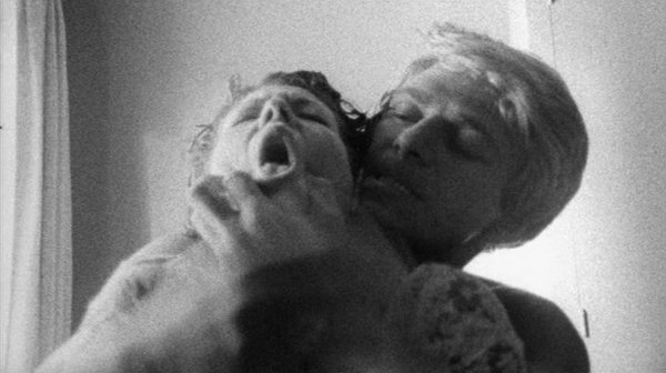 Dès lors, la proximité aux corps agités des personnages l’emporte sur tout le reste. Elle va même jusqu’à définir le rythme du film : si l’on admet, comme semble le faire Cassavetes à travers sa mise en scène et son rejet des facilités narratives (notamment lorsqu’il s’agit de capter l’évolution des sentiments amoureux), qu’il n’y a de durée que physique et de temps que dans le temps du geste, alors tout est porté par le corps, ici et maintenant. Et le geste, particulièrement lorsqu’il se dégage du monde, de toute signification sociale (autrement dit lorsqu’il n’est pas pensé par celui qui l’exécute), signe alors la présence du corps lourd et tangible, sa puissance, son énergie, son inspiration. Les personnages ivres, hilares, vomissants, effondrés suspendent à eux seuls l’action, jusqu’à l’effacer presque, et imposent au récit leur propre essoufflement. Tous ces gestes sans conscience ni mémoire deviennent les motifs principaux de la trame. Les longs moments qui composent Faces s’articulent ainsi les uns par rapport aux autres de manière peu traditionnelle, et le temps de l’intrigue n’est que discrètement suggéré : le couple Richard-Maria se délite en moins de trente-six heures, soit deux longues soirées et une matinée encore imbibée d’alcool et de médicaments pris en doses trop généreuses. Et tandis qu’une silhouette saisie de la tête aux pieds est souvent suspecte car représentative uniquement d’une figure sociale superficielle, les personnages qui traversent le plus lourdement chaque séquence semblent être ceux qui vivent vraiment au sens où l’entend Cassavetes. Ce sont ces quatre comédiens fabuleux : John Marley (Richard), Lynn Carlin (Maria, sa femme), Seymour Cassel (Chet, l’amant de Maria) et bien sûr Gena Rowlands (Jeannie). Ils sont les quatre piliers de cet incroyable ballet de la vie, fait d’urgence, de corps-à-corps désespérés, de suspension de toute réflexion ou contrôle, et aussi de retour étourdi à la réalité des relations basiques (le final entre les deux époux). Jamais le cinéma n’a offert plus grande vérité émotionnelle.