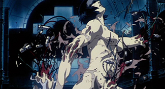 Afin d’appuyer ce discours et surtout d’éviter de le brouiller, Oshii fait le choix judicieux d’éliminer de l’univers les Fuchikoma. De toute évidence, ces robots araignées dotés d’une intelligence artificielle ne convenaient pas à Oshii. Tout d’abord parce qu’il ajoutait une touche de science-fiction un peu trop fantaisiste. Mais aussi parce que leur éviction met d’autant plus en avant la nature particulière du Puppet Master. Programme informatique ayant pris conscience de son existence, il apparaît dans le film comme un cas unique. Cela renforce sa préoccupation existentielle qui le lie à Kusanagi, cette dernière cherchant à s’accomplir en s’évadant de son corps alors que le Puppet Master veut s’accomplir en s’y incarnant. Dans ce principe de proposer un resserrement de l’histoire par une forme évocatrice, Oshii modifie le résultat de la fusion entre ces deux personnages. Transsexuel dans le manga, il devient un enfant dans le film. Soit un concept équivalent d’union et de renaissance mais avec une représentation plus percutante dans un cas que dans l’autre.