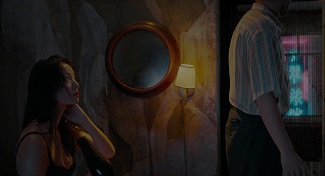 C’est lorsque démarre la seconde partie du film que la véritable cassure se produit, activant les réminiscences du passé. A l’image des expériences mémorielles de David Lynch, le dédale visité, ici parcouru dans la fluidité diabolique d’un unique trajet de caméra sans la moindre coupe, se retrouve traversé par une myriade de totems reconstitués et/ou reconfigurés, créant de subtiles passerelles entre les espaces réels et oniriques. Vu que le temps est ici un leitmotiv omniscient qui s’incruste un peu partout (Bi Gan aime beaucoup les montres et les pendules), le calendrier est mis lui-même à l’honneur pour amorcer la liste des échos et des correspondances : en effet, le plan-séquence prend place le soir où démarre le solstice d’hiver (autour duquel les jours sont les plus courts de l’année), alors que, précédemment, Hongwu suivait Wan dans un tunnel la nuit du solstice d’été (autour duquel les jours sont les plus longs de l’année). La draisine qui conduit Hongwu à la grotte au tout début du plan-séquence ressemble bien à celle dans laquelle il avait placé le corps ensanglanté du Chat avant de le faire disparaître au fond d’une mine. Le jeune garçon de la grotte, avec qui il entame une partie de ping-pong dans l’espoir de poursuivre son voyage, est vite appelé « Jeune Chat » (serait-il le Chat jeune ?) et apparait ici coiffé d’une tête de chèvre morte après avoir été « libéré » d’une cave scellée (serait-il un fantôme ?). Le ping-pong était lui-même mentionné dans le passé par Hongwu – c’est ce qu’il aurait appris à l’enfant que Wan et lui auraient pu avoir si elle n’avait pas choisi d’avorter (le « Jeune Chat », aussi doué que Wan pour mentir, serait-il donc le fils qu’ils n’ont jamais eu ?). Et il y en a plein d’autres comme ça tout au long de ce plan-séquence : une miniature de camionnette qui évoque le véhicule avec lequel Hongwu suivait Wan, une variété d’agrumes que Wan recherchait autrefois et qui se manifeste soudain un peu partout (entendue dans un air de karaoké, transportée sur le dos d’un âne têtu, dessinée en triple signe de jackpot sur une machine à sous), une femme rousse évoquant la mère de Hongwu, une « maison des amants » qui a pris feu, une montre qui prend la place d’un pendule, etc…