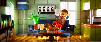 Cette construction personnelle, au sens littéral concernant Lego, ne se fait par le seul fait de l’individualité mais par le rapport à l’autre. Le carton d’ouverture de Tempête… le proclamait (« a film made by a lot of people »), 21 Jump Street n’était autre qu’un « film de potes » à la Joel Silver, quand La grande aventure Lego met en exergue l’importance du travail d’équipe. La création d’un film, la résolution des enjeux narratifs et la consécration intime ne peuvent se faire sans cette croyance en la force collective. Réflexion sur le cinéma (il y est question de l’ « idée originale »), Lego résume ce qu’est l’art selon Miller et Lord : même la chose la plus stupide possible (une pluie de glace au chocolat, un canapé superposé) peut être pleine de sens. C’est cette croyance en la dérision (le n’importe quoi se conjugue à la frénésie comme allégorie de la vie) qui fait la force de l’œuvre de Miller et Lord, puisque c’est cette potentielle débilité qui, élément dramaturgique, va soit condamner les personnages à une mort certaine (les catastrophes culinaires de Tempête de boulettes géantes) soit leur sauver la vie (le canapé-royal). Dans 21 Jump Street, le caméo des « véritables » héros semble d’abord futile et facile, avant que ces personnages, en seulement quelques minutes, prennent chair à nos yeux, jusqu’à leur fin touchante, ce qui démontre la difficulté à créer du gag gratuit qui simultanément est nécessaire à l’histoire. Ainsi, le running-gag de « Where’s my pants ? » trouvera finalement son utilité, le plateau de tournage de cette sitcom foireuse devenant l’axe de propagation par les caméras d’un discours révolutionnaire. Chez Lord et Miller, ce qui parait tout à fait idiot se révèle en vérité utile pour la narration, à l’étoffement des personnages voire même au discours du film : ce canapé à double-étage, c’est tout cela à la fois.