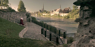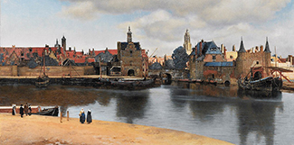 Lors des promenades effectuées par June le long du fleuve, on aperçoit une balustrade noire en fer forgé, seule infrastructure qui renvoie encore au monde moderne. Cette ville est déconstruite pour mieux coller à l’imaginaire d’autrefois : on cherche à retrouver une topologie similaire aux villes de la Renaissance. Si le régime fait détruire les œuvres d’art, il semble pourtant que la peinture hollandaise leur a servi d’inspiration. De nombreux peintres réalisèrent des vues d’un paysage urbain séparé par un fleuve mais ici, ne serait-ce pas une nième convocation de Vermeer, de sa Vue de Delft, une des plus célèbres vedutas (paysage urbain) qui soient ? Les teintes bleu/gris se marient aux couleurs brunes, les nuages laissent passer quelques rayonnements solaires et on a l’impression de sentir planer sur la ville une présence mystique.