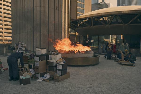 Grâce à l’un des rares flashbacks qui montre la mise en place de Gilead, on voit la ville se modeler pour correspondre aux idéaux du régime : les maisons sont vidées du superflu, l’aménagement urbain est repensé et les vêtements sont jetés au profit d’uniformes. La ville choisie ici par Serena est intéressante car à taille humaine et surtout, les monuments et maisons n’y sont jamais bien hauts, comme pour ne pas concurrencer le divin et le naturel, comme pour attester de sa modestie face à la toute-puissance des cieux. Au contraire, la métropole (Boston) symbolisera le vice car on ne l’apercevra qu’à travers un bordel (illégal à Gilead bien sûr mais largement fréquenté par les commandeurs).