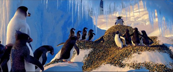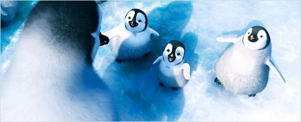 C’est sur ces paroles issues de la chanson Golden Slumbers des Beatles que s’ouvre le premier Happy Feet. Dans un français vulgaire, on pourrait le traduire par « il y avait une fois une façon de revenir à la maison ». Une première phrase étrange d’autant plus que les images l’accompagnant semblent complètement hors sujet par rapport à ce que l’on sait du sujet. Le film est censé se dérouler sur la banquise. Or, on démarre dans l’espace intersidéral avec des visions de l’univers. Par toute une série de fondus imperceptibles, on s’approche finalement du lieu de l’action. Quelle est l’utilité d’un tel processus évoquant le plan d’ouverture de Contact (que devait d’ailleurs réaliser George Miller avant que Jodie Foster le mette à la porte) ? Deux points semblent justifier un tel choix. Le premier tient simplement à situer l’action et les personnages au sein d’un grand tout. Ce positionnement introduit le principe de quête existentielle sur lequel nous allons revenir plus loin. L’autre point tiendrait à ce fameux homeward des paroles. Quelle est cette maison dans laquelle on pouvait revenir jadis ? De par la pureté et l’absolue sérénité de ces visions galactiques liées entre elles par des effets invisibles, la réponse pourrait juste être la nature.