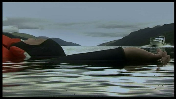 Le premier plan du film reste donc dans le brouillage de piste en jouant sur la connexion avec le cinéma d’Herzog. En effet, cette ouverture évoque un phénomène que décryptera le réalisateur l’année suivante dans son documentaire Grizzly Man. Tiré des dernières minutes du film, l’introduction montre un plan au ras de l’eau. Rien ne se passe, quelques débris flottent et la caméra est simplement bercée par le mouvement de l’eau. Il apparaît clair qu’il n’y a personne derrière la caméra et que celle-ci est laissée à l’abandon. Dans Grizzly Man, Herzog se montre fasciné par un moment où l’écologiste Timothy Treadwell prépare sa caméra et s’éloigne afin de tourner une entrée de champ dynamique. Le réalisateur trouve quelque chose de magique devant les images capturées par une caméra désormais livrée à elle. Unique témoin d’une nature en action, celle-ci semble alors prendre vie, pour reprendre les termes d’Herzog. Le même effet se ressent devant le plan d’ouverture d’Incident Au Loch Ness. Toutefois, le sentiment de magie clairement véhiculé est facile à remettre en cause. Le mouvement prétendu naturel de la caméra constitue un panoramique dévoilant un corps au premier plan alors qu’un bateau s’approche au second. La composition du plan est clairement pensée et il y a une personne derrière la caméra pour l’exécuter.