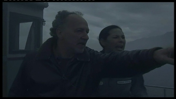 Si Zak Penn fait tout son possible pour rendre la réalité excitante, il ne se doute guère qu’il n’a finalement aucunement besoin de forcer les choses pour que la réalité atteigne l’extravagance de la fiction. Progressivement, la forme du documentaire s’étiole pour définitivement se rattacher aux codes du genre. Le fait est qu’il n’y a aucun effet de transition entre les deux, aucune brusquerie. Il n’y a qu’une évolution naturelle par rapport aux éléments mis en place. Sans le vouloir, chacun des protagonistes va devenir un archétype propre au genre. Si Penn est aussi insupportable, c’est finalement parce qu’il est destiné à devenir le salopard de l’histoire. Il est celui qui fout tout le monde dans la merde. Ce sont ses réclamations sur l’échange du moteur et le sabotage de la radio qui entraîneront l’isolation des personnages. Le prétendu scientifique est lui complètement dépassé par les forces de la nature qui se déchaînent (normal, il n’est en fait qu’un acteur). A défaut d’être experte en sonar, la jeune femme plantureuse prouve qu’elle a aussi un cerveau puisqu’elle sait utiliser son matériel. Quant à Herzog, il devient le grand héros qui ira jusqu’à faire face au monstre.