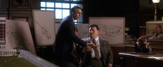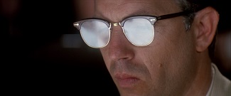 A revoir JFK aujourd’hui, il apparaît très clair que Stone a pris acte de cet état des choses. Sur la captation de l’assassinat de JFK durant le générique de début, son montage diaboliquement trompeur d’archives réelles et de reconstitutions filmées intègre en son sein un « trou noir » sur lequel les bruits du fusil armé et du coup de feu se font tout à coup entendre – une vraie stratégie de hors-champ visuel dont Michael Moore fera également usage au début de Fahrenheit 9/11. L’idée générale est là : occulter le moment de l’assassinat pour finalement passer un film entier à tourner autour, en orbite toujours plus rapprochée d’un centre de gravité aveuglant qu’il s’agit de (re)définir et de (re)dessiner autant que possible jusqu’à ce qu’une circonférence assez précise puisse être établie. La philosophie d’historien qui caractérise Stone rejoint ici à plus d’un titre celle d’un Costa-Gavras, visant non pas à se faire à l’idée d’un mystère irrésolu mais à combler coûte que coûte le vide par la recherche de la vérité. Et de ce fait, en faisant le choix – ô combien risqué – de mettre en scène le contrechamp du film de Zapruder lors du procès final via des choix de montage quasi identiques, il cherche ainsi moins à manipuler son audience en exhibant sa thèse officielle comme étant la vérité (au sens de « preuve réelle et indiscutable ») qu’à susciter le vertige sur ce qui se doit d’être vu et/ou perçu à travers les images, tantôt concrètes tantôt mentales. Comme l’équipe de Jim Garrison se retrouve contrainte à passer de l’autre côté du miroir pour avancer le plus possible vers la vérité (« Le blanc est noir et le noir est blanc »), le cinéaste sait pertinemment que la mise en pratique (et à contribution) de son art de la manipulation n’est pas sans risque, et que seul un savant effet de distanciation peut permettre à sa démarche de tutoyer le vrai. Ce qu’il illustre tout au long de JFK est ainsi sans appel : ce que l’image et le montage propagent n’est que supposition (un mot qui revient plusieurs fois pendant le film) et c’est la forte hypothèse qui supplante en fin de compte l’absolue certitude.