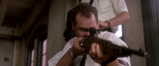 Le système narratif ici mis en place, imbriquant ad nauseam le temps présent (image de qualité normale) et le temps passé/conditionnel (image NB ou couleur en résolution très inégale) sur plus de trois heures de projection sans le moindre temps mort, peut se lire a posteriori comme le point de départ de la période expérimentale de la filmo de Stone, prolongée de façon magistrale avec Tueurs-nés, Nixon, U-Turn et L’Enfer du dimanche. Au sein de cette pratique que l’on peut juger perturbante surgit la volonté du cinéaste de se mettre en accord, à des fins de postmodernisme, avec les nouveaux régimes d’images – en particulier ceux du clip surdécoupé et de la célérité télévisuelle à la sauce MTV. Plutôt que de conchier sans recul ni état d’âme ce qui peut s’apparenter à de la bouillie d’images qui bougent, la raison voudrait qu’il soit préférable d’en tirer profit afin d’en faire naître un nouveau mode de lecture. Ce kaléidoscope d’images de sources différentes (film de fiction, Super 8, 16 mm, 35 mm, vidéo basse définition, archives télévisées…), elles-mêmes soumises à un rythme d’images/seconde très variable d’un plan à l’autre, sert-il à inciter que toutes les natures d’images peuvent être convoquées dans tous les cas de figure ? Non. Cela sert au contraire à remettre en perspective la notion de lisibilité telle que définie de façon ancestrale par le cinéma : dès lors que la profusion insensée des éléments tend à brouiller la lisibilité de l’action ou du plan, la notion même de plan se perd dans une zone grise.
