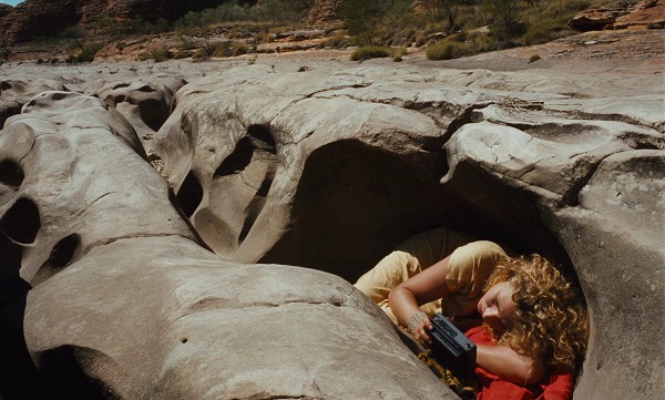 Pour cette raison-là et pour tant d’autres encore, il reste encore aujourd’hui impossible d’appréhender Jusqu’au bout du monde comme n’importe quel autre film. Œuvre globe-trotter, oui, bien sûr, peut-être même l’une des seules du 7ème Art – aux côtés de Baraka de Ron Fricke et de Sans soleil de Chris Marker – à mériter un tel qualificatif, mais dont l’invitation à (perce)voir le monde autrement s’écarte du simple témoignage objectif d’un globe terrestre à mille visages. C’est moins un film-fleuve de par sa durée qu’un film-monde de par la surcharge d’idées, de peurs et d’espoirs qu’il ne cesse de charrier. Et c’est d’autant plus frappant que sa genèse aura pris très précisément racine dans l’Outback australien de 1977, là où Wenders, conscient de pouvoir appréhender le « dehors » du reste du monde en restant positionné dans cette terre lointaine et brûlante, entama la rédaction d’une histoire de science-fiction basée sur tout ce qu’il avait pu explorer auparavant sur les autres continents. Douze ans plus tard, ce fut là encore dans ce désert australien, plus précisément du côté de Turkey Creek, que Wenders apprit en retard – et par l’intermédiaire d’un vieux fax situé dans une épicerie locale – la chute du mur de Berlin. L’information lui fut en outre transmise sous la forme d’une image quasi illisible qu’il s’agissait alors de déchiffrer, et ce détail d’ordre visuel suffit en soi à éclairer considérablement le thème central de Jusqu’au bout du monde, en soir le film de l’« après » qui réfléchit sur un autre « après ». Que cette œuvre de fiction se soit finalement calée en continuité directe des Ailes du désir (son plus gros succès) n’étonne guère a posteriori : ce superbe hymne à l’humain dans tout ce qui le caractérise (vie, amour, mortalité, enfance, simplicité) témoignait déjà d’un monde en panne sèche de morale et de spiritualité. Pouvait-il y avoir une autre façon de transcender le vécu et le genre humain avec grâce et poésie, et ce sans que jamais l’émotion ne soit freinée ? Wenders y répondait ici par l’affirmative, armé d’une stratégie narrative et immersive sans commune mesure dans l’Histoire du cinéma.