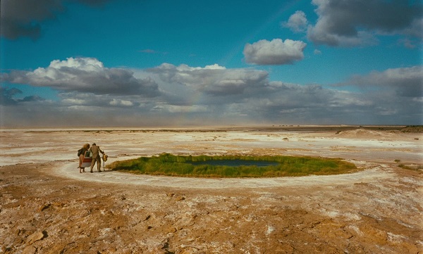 La voix off, en l’occurrence celle de Sam Neill, a beau se montrer un tantinet illustrative au gré du voyage, sa véritable nature – éclairée a posteriori – suffit à abattre ce léger préjugé. En effet, le personnage d’Eugene n’a pas seulement valeur de « guide » qui gèrerait en off les transitions d’un pays à l’autre, et ne peut non plus être réduit à une sorte de passeur émotionnel capable d’intervenir au gré des péripéties. C’est avant tout un écrivain travaillé par la rédaction d’un livre, et qui use de son périple – comme de son amour toujours intact pour Claire – pour trouver matière à appréhender le présent et potentiellement le futur. Déceler un double de Wenders dans ce personnage relève ainsi de l’évidence – et pas seulement parce que l’amour éteint entre lui et Claire peut en soi préfigurer la rupture entre Wenders et son actrice principale deux années plus tard. Entendre ce personnage commenter l’action évite en outre l’effet fatal de paraphrase, tant les mots forment ici le contrepoint invisible de l’image (et vice versa) et laissent de facto la subjectivité de la parole enrichir l’objectivité du regard. C’est au détour de la seconde moitié du film que la voix off s’implantera de façon plus conséquente, afin de commenter subjectivement les événements à mesure que le narrateur écrit son roman en temps réel. Le film prend dès lors la dimension d’un conte philosophique, où chacun poserait enfin ses valises dans un neuvième et dernier pays (l’Australie et son fameux Outback) tout en prenant acte et en faisant bilan des huit pays précédemment visités. Et c’est dans ce lieu-là, à savoir un laboratoire scientifique isolé et caché au cœur du paysage aborigène, que les enjeux trouvent leur clarification : Trevor McPhee, en réalité Sam Farber, voyageait à travers le monde pour enregistrer des images destinées à son père Henry (Max von Sydow), inventeur d’un système révolutionnaire permettant de transmettre des images mentales à sa femme aveugle Edith (Jeanne Moreau).