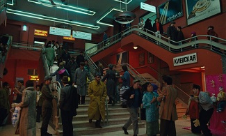 En troquant l’effervescence désintéressée contre la stabilité angoissée, cette seconde partie se fait donc intime parce qu’exploratrice de la raison duplice d’un voyage après qu’il ait été fait. Si le résultat compte moins que le chemin (remember Soderbergh…), Wenders tend ici à rendre la destination plus révélatrice que le trajet. Ce qui, sans tarder, nous motive à relire les composantes du film tout entier sous un autre angle. Il faut croire Wenders sur parole lorsqu’il indique a posteriori – et visiblement avec une pointe d’ironie – que ce qui fut autrefois pensé comme un film futuriste s’est finalement transformé en un film d’époque. On peut facilement voir dans cet état des lieux un principe-clé du genre science-fictionnel : anticiper l’avenir revient moins à préfigurer le monde futur qu’à refléter l’époque telle qu’elle se projette dans l’avenir, avec tout ce que cela suppose de désirs, d’espoirs et d’angoisses. Jusqu’au bout du monde ne serait-il ainsi que le reflet de son propre tournage, avec Wenders qui peindrait ses réflexions à l’écran tandis que Sam Neill les coucherait à l’écrit ? On n’en est pas loin, tant le reste de ses partis pris artistiques parlent pour lui. D’un décorum néon-rétro jusqu’aux choix des costumes glam-punk en passant par un fourbi technologique à la lisière du bazar intemporel (gadgets électroniques archi-bariolés, véhicules de police au look de fuselages d’avions montés sur petites roues, base de données informatique sous forme d’un « ours virtuel »), tout suinte le foutoir postmoderniste des années 80. Même l’extraordinaire bande originale du film pèse lourd là-dessus, mêlant des sonorités planantes et cosmopolites de Graeme Revell (dont des chants de pygmées) à un télescopage d’artistes issus du gratin de la scène rock (U2, Neneh Cherry, Lou Reed, Nick Cave, Patti Smith, Elvis Costello, R.E.M, Peter Gabriel, Talking Heads, Julee Cruise, T-Bone Burnett, Depeche Mode, Daniel Lanois…), tous sollicités par Wenders afin d’exprimer musicalement leur perception de l’an 2000. Parler de l’« après », c’est d’abord prendre acte du « pendant ». Parce que ce qui va suivre sera une autre paire de manches…