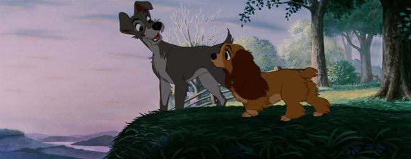 L’une des qualités des derniers blu-rays édités est d’offrir des reproductions des réunions de travail entre Walt Disney et ses collaborateurs. Dans celles présentes sur La Belle Et Le Clochard, on peut entendre Disney évoquer la nécessité de contrôler les coûts de production. Une nécessité qu’il ne semble pas toutefois considérer comme une barrière à la réalisation de ses idées. Après tout, il s’offre ici le luxe de produire le film dans le tout nouveau format cinémascope. Une utilisation pourtant onéreuse (le budget inflationniste de La Belle Au Bois Dormant provient notamment de là) puisqu’obligeant à travailler sur un large format. Disney ne rechigne pourtant pas à mettre la main à la poche, laissant parler une passion pour ces nouvelles techniques permettant de repousser l’art de conter une histoire. Bien que le film fût également pensé dans un traditionnel format 4/3 afin de satisfaire tous les exploitants de l’époque (il aurait été intéressant de proposer également sur le blu-ray le film dans ce format puisque le recadrage entraînera plusieurs retouches sur la mise en scène et l’animation), le cinémascope donne une certaine aura et ampleur sublime à un récit s’éloignant pourtant quelque peu du carcan traditionnel de Disney.