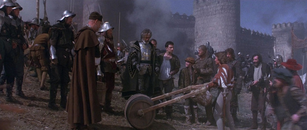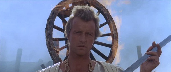 Dès lors, bien que Verhoeven ait longtemps souligné que l’intrigue n’avait pas été conçue dès le départ sous cet angle, l’affrontement entre Martin et Steven pour une seule et même femme se pare d’un sous-texte sur le conflit entre la superstition et la science, signe de la transition d’un Moyen-Age en état d’extinction vers une Renaissance fleurissante : d’un côté, Martin se sert d’une figure religieuse pour contrôler ses mercenaires, et de l’autre, Steven s’impose en stratège ambitieux (ses armes de guerre auront leur utilité lors du siège du château) autant qu’en homme de science (ses conseils aident même un soldat à guérir de la peste). Quant à Agnes, authentique guerrière amazone, elle n’est que le catalyseur du combat qui va s’intensifier entre les deux parties, passant d’un camp à l’autre sans que son jeu soit facile à cerner, jouant avec son corps comme avec les sentiments de ses deux prétendants. La chair qui provoque et engendre le sang, en somme. Même la religion s’en prend plein le crucifix pendant tout le film, tant le cinéaste n’a de cesse que de la relier à un opportunisme permanent : en effet, dès que les mercenaires bannis tombent par hasard sur une statue de Saint-Martin, ils se muent en fanatiques sous l’impulsion d’un cardinal illuminé et perverti par sa foi (qui impose le christianisme par l’épée et la violence), interprètent chaque micro-événement comme un signe divin (la roue en feu qui évoque une auréole derrière la tête de Martin), et justifient leurs actes de barbarie par leurs croyances. Au-delà du geste provocateur et blasphématoire, cette critique corrosive du fanatisme reste terriblement d’actualité, et en devient même salutaire à une époque où l’obscurantisme et le politiquement correct contaminent chaque strate de la société.