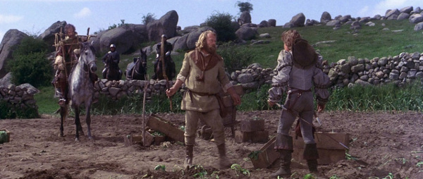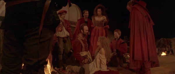 De leur côté, les deux hommes qui complètent ce triangle amoureux et sanguinaire puisent leur sève d’ambiguïté à la même racine. Martin, incarné par Rutger Hauer (dont la relation d’amitié avec Verhoeven s’est sévèrement détériorée durant le tournage), a beau être présenté comme l’incarnation du mercenaire brutal et sans scrupules, il semble aspirer à une vie plus noble et plus juste, ne serait-ce qu’au travers de sa relation avec Agnes qui le rend plus civilisé : grâce à elle, il semble plus courtois, il apprend à manger avec un couteau et une fourchette, et il délaisse ses habits d’un rouge sang pour des vêtements d’un blanc immaculé. Toutefois, il n’atteindra jamais cette noblesse, d’une part à cause de ses pulsions qu’il ne sait pas contrôler, d’autre part en raison de la trahison d’Agnes chez qui il perçoit très clairement une forme de double jeu, et restera alors un être à la fois physique et bestial. Tout le contraire de Steven, fils du seigneur Arnolfini, que les premières scènes du film présentent comme un jeune idéaliste, amateur de livres et de science chez qui la conception d’armes de guerre est vouée à l’échec ou au ridicule. L’impression est faussée car, à partir du moment où son père est blessé et sa promise kidnappée, le rejeton maladroit se mue en stratège impitoyable, comme en témoigne le chantage indirect qu’il impose à un capitaine retraité (Jack Thompson) pour le forcer à l’aider dans sa guerre. La première rencontre entre Steven et Agnes est aussi fascinante, tant elle permet à Verhoeven de détourner la sempiternelle scène romantique sur une autre voie : tombée sous le charme de celui qui doit prochainement devenir son époux, Agnes l’incite à manger une mandragore censée les faire tomber amoureux l’un de l’autre. Sauf que la scène a lieu sous le cadavre pendu d’un homme, qu’Agnes installe d’emblée une connotation surnaturelle à cet acte (cet amour serait possible grâce à une légende selon laquelle la mandragore serait fécondée par le sperme des hommes pendus) et que Steven reste figé dans sa pensée scientifique. Ou comment inscrire une love-story naissante dans un conflit entre le physique et le spirituel.