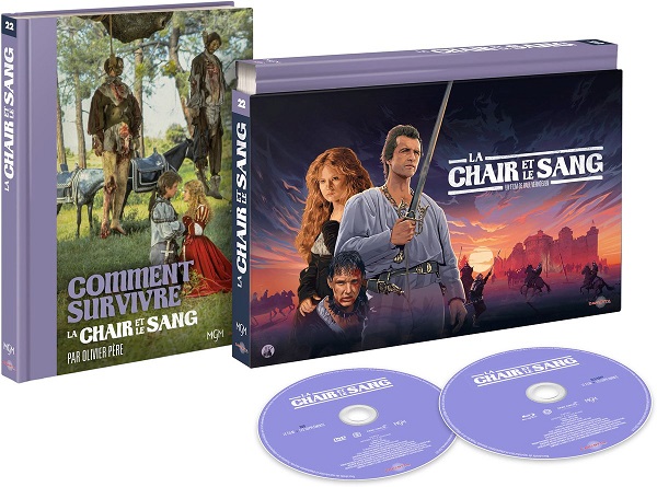 Pour compléter ces trois entretiens déjà costauds en soi, l’éditeur a jugé bon de rajouter deux pièces maîtresses qui, additionnées l’une à l’autre, offrent le panorama le plus complet qui soit sur le tournage et la production du film. D’abord l’indispensable commentaire audio (sous-titré) de Paul Verhoeven sur cette director’s cut aussi explicite qu’il le souhaitait, et durant lequel l’homme fait preuve d’un débit verbal hors du commun. Incapable de s’arrêter de parler, intarissable sur mille et un détails qui apparaissent à l’écran (ou pas), jamais avare d’anecdotes et de souvenirs sur la travall avec ses collaborateurs (en particulier une Jennifer Jason Leigh débutante qu’il couvre de tous les éloges), Verhoeven déballe ici une leçon de cinéma magistrale qui, à plusieurs reprises, finit par dériver vers la leçon d’Histoire, le cinéaste ne se privant jamais d’apporter de précieux enseignements sur les caractéristiques et les courants idéologiques de l’époque explorée. Un sans-faute verbal qui ne s’arrête qu’à la toute fin du générique, soyez donc prévenus ! Deuxième atout, et pas des moindres : un épais livre de cent soixante pages intitulé Comment survivre, rédigé par Olivier Père en collaboration avec l’ex-journaliste de Starfix François Cognard (à l’époque témoin privilégié du tournage de La Chair et le Sang en Espagne), et agrémenté de nombreuses photos d’archives. Le mot « survie » est ici la colonne vertébrale de cette analyse écrite, sans doute la meilleure dont le film pouvait bénéficier. Quant au film lui-même, il reprend plus ou moins le master HD qu’avant, toujours aussi soigné et redoutable en dépit d’un bruit vidéo qui persiste à jouer les indésirables dans certaines scènes gagnées par l’obscurité. Les pistes audio, optimales en VF comme en VOST, offrent toujours un spectacle de très haute tenue.