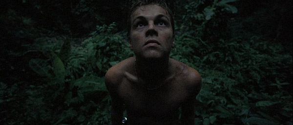L’échec commercial du film se trouve dans cette quête d’un hypothétique consensus. Consensus qui se produira finalement dans le mauvais sens. Les cinéphiles considèreront l’objet trop faux-cul dans sa conception et le grand public n’adhèrera pas à l’étrangeté de cette histoire. Il faut dire que la tête d’affiche n’a pas du arranger les choses. Comptant initialement poursuivre sa collaboration avec Ewan McGregor, Danny Boyle se verra imposer le choix de Leonardo DiCaprio dans le rôle principal. Encore tout auréolé du succès de Titanic, l’acteur semble là pour rassurer le studio quant aux risques de la production. Or cette assurance va se retourner contre eux. Il convient de se remettre dans le contexte de l’époque. Le raz-de-marée provoqué par le film de James Cameron a fait du beau Léo l’égérie de midinettes. Un statut de beau gosse vingt-quatre carats qui omet toute sa carrière pré-Roméo & Juliette comportant pourtant des rôles assez osés. Guère désireux de se laisser prisonnier par cette réputation, DiCaprio ne tardera pas à vouloir démontrer une palette de talent plus étendue. Néanmoins, il la fait jusqu’alors de façon discrète entre son double rôle dans L’Homme Au Masque De Fer et son autoparodie de star dans Celebrity. La Plage lui permet par contre d’aller beaucoup plus loin. Sans s’en douter, le studio livre à Boyle un précieux complice pour l’entreprise avec cette jeune vedette qui n’a pas peur de se faire du mal s’il faut. Aujourd’hui, il apparaît étonnant mais peu choquant de voir DiCaprio dans un film comme Le Loup De Wall Street où il participe à des parties à trois, souffle de la coke dans le cul de prostitué ou se roule par terre complètement défoncé. L’image de l’acteur a évolué au fil des années. A l’époque, le public aura beaucoup de mal à voir son petit chouchou se comporter comme un enfoiré et péter un câble au fond de la jungle en bouffant des insectes.