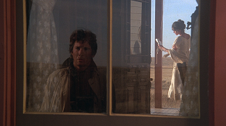 Il en va de même pour tout ce que l’œil infrasensible de Malick choisit d’isoler ou de capturer. Par la seule grâce du contre-jour, un simple épouvantail cadré de dos en vient presque à passer pour une sorte d’oracle silencieux et omniscient – il réapparaitra de face lorsque les amants s’accorderont une parenthèse secrète à l’extérieur. Un parapluie abandonné dans une plaine ou un simple verre au fond d’une rivière frémissante, de leur côté, sont autant de motifs quasi proustiens sur la mélancolie et le temps qui passe. Un coup de vent qui agite violemment une girouette ou qui révèle un adultère en balayant un simple drap suffit à installer les signes de la tragédie à venir. Dans la scène où Bill se fait abattre par derrière durant sa fuite, Malick cadre de face, via une contre-plongée verticale d’à peine une seconde, la liquéfaction de son visage lorsqu’il frappe la surface d’une rivière, comme pour suggérer un retour évident de l’humain à l’état aqueux au moment de la mort. Quant à ces effets de montage qui alternent l’humain et la nature, ils ont le don de tout rendre lumineux. En témoigne ce plan fixe sur un pot de fleurs, que Malick choisit de caser en plein milieu du champ/contrechamp des retrouvailles entre Bill et Abby : en plus d’évincer tout dialogue entre deux regards évocateurs, ce simple plan suggère subtilement la vanité de l’homme à vouloir tout domestiquer, que ce soit la nature ou l’être aimé. Pour un triangle amoureux où une nouvelle Eve se retrouve tiraillée entre deux Adam dans un Eden plus exploité que protégé, difficile de trouver plus parfait résumé de l’enjeu.