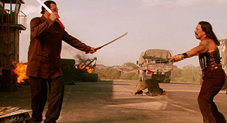 On peut toutefois admettre que son entrée remarquée dans la Tarantino’s family aura changé la donne, lui conférant mine de rien une aura de cinéphage bisseux et mal élevé, visiblement obsédé par l’envie de mixer John Woo et comic-book en un énorme chili con carne bien relevé, assaisonné par un amas de mexicains bourrés et de violence grandguignolesque. C’est en tout cas ce que les deux Desperado et Une nuit en enfer – de loin ses péloches les plus virtuoses – auront su entretenir avec force jusqu’à présent. Son cinéma s’en retrouvait alors grandi, voire acquis à la jouissance pure et coupable de son audience, transcendant sa mollesse formelle et ses défauts de fabrication (le découpage et la scénographie ont toujours été ses points faibles) par une recherche constante du rythme effréné et du « plan qui tue ». Qu’il s’agisse pour lui de viser l’anthologie foutraque du cinoche bis qu’il affectionne ou d’orchestrer de délirants ballets pyrotechniques où tout est multiplié par dix, sa force tenait dans peu de choses : décliner les codes du genre bisseux par une déformation tout aussi bisseuse, c’est-à-dire modeste dans sa forme et à fond dans la coolitude burlesque, sans autre arrière-pensée que celle de (se) faire plaisir.