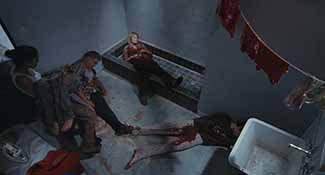 Le scénario de Martyrs est à ce point diabolique dans sa structure comme dans sa progression qu’il suffit en tant que tel à donner une preuve de la maturité spectaculaire dont Pascal Laugier a su faire preuve ici. Le début de l’intrigue a tout pour intriguer, d’abord parce qu’il démarre plein pot et sans explication sur la fuite d’une petite fille en larmes et couverte de blessures, ensuite parce qu’il embraye sur une suite de vidéos d’archive autour de deux filles traumatisées qui vivent dans un hôpital (l’une d’elles, surnommée Lucie, est celle qui vient d’échapper à ses kidnappeurs), enfin parce qu’il fait mine d’entretenir un archétype du cinéma d’horreur avec la présence d’une créature horrible qui semble pourchasser Lucie. Image instable, grain prononcé, colorimétrie limitée, caméra à l’épaule au plus près des corps : tout le film semble déjà là, de son ambiance triste et banale jusqu’à sa mise en scène ouvertement sèche et sans compromis. Mais le mystère narratif perdure encore pour ce qui est du sujet, surtout lorsque l’on enchaîne direct sur la présentation d’une famille pour le moins quelconque qui prend son petit déjeuner, avec des discussions de sitcom bêbête et des enfants qui se chamaillent (on reconnaît Xavier Dolan dans le rôle du fils). Le lien avec le prologue n’est pas encore très clair. Et tout à coup, c’est le choc : une jeune femme sonne à la porte et, sans aucune explication, assassine tout le monde avec une sacrée sauvagerie.