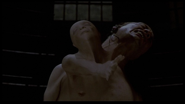 Cette richesse visuelle fait la force du film. Bien que fonctionnant autour d’échanges verbaux, la relation de Mary Reilly avec Jekyll/Hyde se fonde sur tout un lot de métaphores et de visions oniriques. L’une des premières scènes va ainsi poser une sorte de prédiction des rapports à venir. L’héroïne doit transporter une anguille jusqu’à la cuisine. Réchauffée par la chaleur de ses mains, celle-ci se tantine dans tous les sens jusqu’à ce que la cuisinière l’immobilise et la découpe en rondelles. Par son rapport sexuel et sa conclusion, ce passage devient l’illustration du rôle de Reilly vis-à-vis de Jekyll et de son double Hyde. Jekyll est attiré par Reilly mais celle-ci reste inaccessible de par sa position sociale. Tout juste l’approche-t-elle en prétextant une curiosité scientifique. Il préfère laisser ses sentiments s’exprimer par une part d’ombre moins scrupuleuse sur les détails. En ce sens, le film refuse de jouer sur le manichéisme de la double personnalité. Jekyll et Hyde sont chacun la facette d’une même identité, rendant ainsi plus troublante une réflexion sur une nature humaine mêlant autant de bonté que de vileté. Frears ne masque d’ailleurs aucunement que Malkovich est derrière les deux personnages. Un aspect qui cumule naturellement dans une transformation finale jouant sur le concept de personnages partageant un même corps.