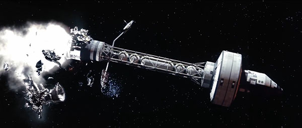 Pour ce qui est de saisir le rapport quasi moléculaire de l’homme face à l’espace, ne serait-ce qu’au travers des nombreux problèmes auxquels il doit faire face, De Palma s’est certes d’ores et déjà fait griller la politesse par Alfonso Cuaron sur Gravity, mais bien avant cela, Mission to Mars prenait une place de choix pour refléter ce chaos (dés)ordonné résultant de l’inadaptation de l’humain aux lois de la physique (Apollo 13 ne compte pas, surtout au vu d’une histoire vraie que l’on connaissait déjà). Même lorsqu’il se limite à illustrer de petits moments de calme et de dialogue, De Palma ne peut s’empêcher d’être le plus dynamique possible. Sa caméra s’avère « flottante » dans le sens où elle joue souvent avec l’espace et les espaces. On peut citer ces travellings hitchcockiens en spirale sur des personnages placés en apesanteur (notamment lors de la scène de danse) ou encore ces plans flottants d’une grande précision lorsqu’un imprévu trahit le déroulement initial de l’action (on le remarque surtout lorsque les personnages tentent de réparer les dommages du vaisseau). Cette mise en scène joue avec nos attentes, à la fois parce qu’elle souligne l’absence de panique à laquelle l’astronaute doit faire face en cas de problème et parce qu’elle installe un suspense terrifiant dans des scènes que l’on pensait anecdotiques à la base. De là vient l’incroyable tension ressentie en voyant les astronautes réparer une simple fuite dans la coque du vaisseau, alors qu’un événement en principe plus propice au suspense le plus étouffant – comme par exemple l’atterrissage risqué de l’équipage sur Mars – est relégué hors champ quand il n’est pas carrément évacué par une ellipse.
