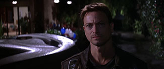 C’est le personnage de Jim McConnell (Gary Sinise) qui guide alors le récit dès son lancement. Le temps d’un double plan-séquence d’ouverture dans un barbecue festif entre astronautes sur le point d’intégrer la première expédition habitée sur Mars, la caméra de Brian De Palma quadrille l’ensemble des destinées humaines qui vont être au cœur de l’intrigue. Sauf une, qui n’est pas encore arrivée à la fête. Ou plutôt deux, dont une qui ne pourra jamais arriver à la fête. Voilà Jim qui arrive en retard dans son cabriolet, mine défaite et gueule mal rasée, comme dans un état de mélancolie profonde. C’est parce que sa femme Maggie n’est plus là, décédée avant l’expédition alors qu’elle devait être la première à fouler le sol martien. C’était déjà ce qui alimentait le héros d’Obsession (dont Mission to Mars peut constituer une sorte de remake déguisé) : le manque de l’être aimé place le héros dans la quête effrénée d’une image, qu’elle soit faussée ou cohérente. L’image de cette femme manquante va donc ici imprégner Jim où qu’il se trouve (sur Terre, dans l’espace, et sur Mars), et il lui faudra un film entier pour la retrouver, qui plus est dans une image de mariée quasi spielbergienne, et, ainsi, se retrouver lui-même. Ce plan manquant, couplé à l’apparition finale d’un martien aux traits totalement féminins, sera celui qui achèvera de bétonner l’angle symbolique de cette expédition martienne : ce n’est pas vers une espèce inconnue que l’humain cherche à aller en voyageant hors de sa planète, mais vers sa propre nature. Sacré paradoxe que voilà : la Terre voyage vers Mars pour trouver Vénus et, ainsi, retrouver la Terre.