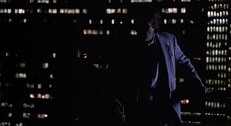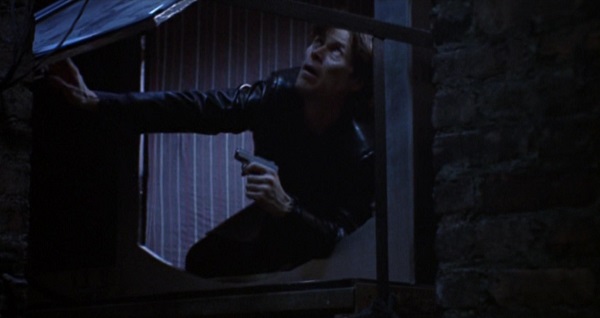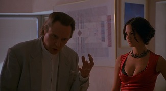 A l’échelle micro, au regard d’une intrigue pas plus sorcière qu’une autre, Ferrara se montre fidèle à la vision cyberpunk de Gibson via un effet de zoom qui floute le global et se rapproche du particulier, ici matérialisé par une love-story au sein d’un monde chaotique. Ce qui entoure les deux amoureux passe au second plan sans pour autant servir de prétexte, d’abord parce qu’on parlera davantage de « milieux » que de « décors », ensuite parce que le cinéaste profite de l’aube du XXIe siècle (voir la date de sortie du film) pour en prophétiser toutes les caractéristiques avec une belle longueur d’avance. En somme, les gouvernements se sont effacés au profit de puissantes multinationales lancées dans une guerre des « cerveaux », l’argent physique s’est dématérialisé au profit de réseaux bancaires sujets au piratage, la langue n’est plus une barrière en soi (mention spéciale au générique groovy et cosmopolite qui duplique chaque titre en anglais, allemand et japonais !), l’identité humaine est devenu « effaçable » à force de troquer son enveloppe chaude et organique contre un support informatique qui promène son image (réelle ou faussée ?) sur le global network, et même le capitalisme globalisé a fini par expurger du monde extérieur toutes ses victimes agonisantes – pas un seul clochard à l’horizon. Le cyberpunk selon Ferrara a donc beau prendre le pouls d’un vrai-faux futur où les avancées technologiques sur le domaine de l’information ont élu domicile dans une ambiance pessimiste à souhait, son intérêt se décale sur une autre problématique, liée au facteur humain. Pour que ce dernier puisse s’incarner et s’imposer dans un cadre qui ne lui laisse plus aucune marche de manœuvre, il ne reste plus que l’amour, ou tout du moins le lien sentimental, ultime rempart contre le contrôle du monde. Film romantique, donc ? Oui. Naïf ? Sans doute aussi, mais surtout ivre de compassion et d’empathie envers la souffrance du genre humain – c’est là l’un des dix commandements de Ferrara – dans un monde moderne sans âme ni frontières. C’est donc au travers de la chute psychologique de ses personnages, en l’occurrence de parfaits petits soldats pour les grosses firmes, que le cinéaste dessine la première étape de sa stratégie.