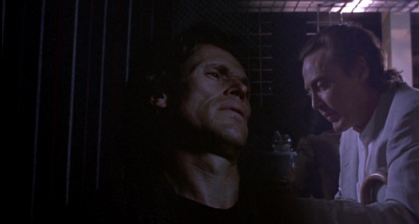 Autre point commun non négligeable avec The Blackout : un personnage qui puise à la source de l’image vidéo la fameuse « image manquante » afin de parachever un montage on ne peut plus chaotique. La différence entre les deux films est un simple détail numérique : là où il ne manquait qu’une seule image à Matthew Modine pour recomposer l’effroyable trou noir de The Blackout, ce sont toutes les images-clés, au sens strict du terme, qui manquent à Willem Dafoe pour reconstituer l’effondrement de la mission et la disparition de Sandii dans New Rose Hotel. Il suffit de remonter le fil du film avec précision pour bien se rendre compte que tout était caché. Rien de ce qui nécessitait d’être « vu » ne l’a été – les scènes de séduction puis de vie conjugale entre Sandii et Hiroshi forment un hors-champ à tout jamais invisible. Rien de ce qui pouvait apporter un relief conséquent aux enjeux du récit n’a été perçu – le doute persiste quant aux enjeux et aux luttes intestines au sein des firmes qui s’affrontent. Rien de ce qui se raccorde aux codes du thriller à proprement parler n’a pu prendre racine si ce n’est au travers de très vagues esquisses vidéo : exfiltration d’Hiroshi, vol de carte génétique, hécatombe virale, traque finale de Fox et X, etc… Plus fort encore : certains personnages, à force de n’exister qu’au travers de la vidéo (Hiroshi n’aura été jusqu’au bout qu’une image projetée sur un écran) ou de carrément se volatiliser sans prévenir (en particulier Sandii et la femme d’Hiroshi), se révèlent expurgés de tout ce qui serait susceptible de les étoffer, de les crédibiliser, de leur conférer une âme ou une identité. Mais c’est là un choix voulu de Ferrara : si l’on s’en tient à la notion d’identité, elle n’est ici jamais unique (dans le sens de « figée »), mais néantisée (X), multiple (Sandii) ou flottante (à peu près tous les autres). De par le fait que Fox et X tendent à devenir les pions de leur propre jeu de contrôle (la vidéosurveillance ne cesse de capturer leurs déplacements au fil du récit), les individus de New Rose Hotel n’ont aucune réalité tangible. Dédoublés dans des miroirs ou des vitres, réduits à l’état de silhouettes-surfaces calées dans les angles morts des espaces contemporains, tous ont entamé leur devenir-image. Et puisqu’on parle d’image…