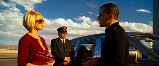 Dernier point crucial : où sont les femmes là-dedans ? Voilà bien un détail qui ne passe pas inaperçu : si tous les personnages du film, alliés ou antagonistes, ont tous droit à leur moment de gloire, ce n’est pas le cas de Tess (Julia Roberts) et d’Isabel (Catherine Zeta-Jones), visiblement exclues du nouveau casse et laissées au foyer par leurs mecs (« Ce n’est pas leur combat », annonce Ocean dès la scène d’ouverture). Pas sûr non plus que la présence d’Ellen Barkin, estampillée cougar de la tête à la micro-jupe, suffise à compenser l’absence de deux figures aussi indispensables au facteur émotionnel du récit – la romance était toujours l’ingrédient qui déréglait les intrigues des deux films précédents. Une diversion a toutefois été installée dans Ocean’s 13, et il convient de ne pas la négliger : une poignée de discussions émouvantes entre Clooney et Pitt sur le rapport à leurs compagnes respectives, allant de simples confidences douces-amères jusqu’à une remarque piquante de l’un à l’autre (« Tu devrais te caser et avoir des enfants… »). Là encore, comme avec Full Frontal, Soderbergh joue sur la frontière vaporeuse entre réalité et fiction, amplifiée par l’aura de ses stars et celle de la ville qu’il filme. Ce n’est pas un hasard si la plus belle scène du film consiste ici en une simple ballade mélancolique au crépuscule, sur le trottoir du strip de Las Vegas. Le temps d’un simple travelling, tout est dit : le plaisir du jeu, le risque de tout perdre, l’amour qui s’étiole, l’amitié qui demeure, le temps qui file trop rapidement, le monde qui change. Presque une parenthèse (dés)enchantée qui annonce déjà l’avenir : un nouveau départ nécessaire, à prendre une fois que cette glorieuse association aura porté ses fruits et que le feu d’artifice aura été tiré. Et comme on savoure ce dernier avec Frank Sinatra en fond sonore (le mythique This Town), disons juste que la boucle est bouclée. Et que le jeu en valait la chandelle.