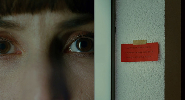 Ce que l’on voit à gauche n’est pas une femme qui assiste à une représentation, puisqu’elle l’a quittée dès le début : du coup, les gros plans sur ses yeux apparaissent comme de brillantes transgressions sur l’écart entre les deux faces de l’écran. Et ce que l’on voit à droite est le déroulement d’un meurtre pensé comme « parfait », ce qui, là encore, est une fausse idée, puisque des images ont échappé à Isabelle dans l’exécution de son plan (celles que Dani a filmées). Par ailleurs, le plan tend à effacer la trace du réel en y intégrant la paranoïa de Brian De Palma pour l’omniprésence d’un regard (ce fameux « œil » qui flottait au-dessus de la scène du crime de Snake eyes).