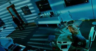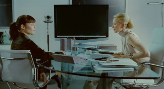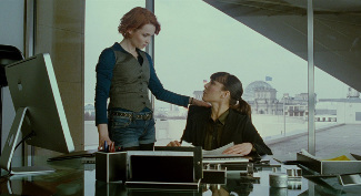 L’époque contemporaine lui permet de pousser à l’extrême ce qu’il avait déjà exploré de façon extrêmement lourdingue dans Redacted, à savoir la multiplication des supports d’image : Internet, Skype, web-conférence, caméras de surveillance, téléphones portables, etc… Aujourd’hui, tout est banalisé, même le voyeurisme et surtout la cruauté par l’image, qu’elle soit vidéo ou fixe. La scène d’humiliation d’Isabelle à travers une vidéosurveillance récupérée par Christine est à ce titre édifiante : dans cette scène dérangeante, l’image est utilisée pour jouir de la souffrance de l’autre. Et au sein même de l’entreprise, la création visuelle se voit elle aussi copiée, dupliquée, retravaillée et abandonnée au regard des autres : le clip publicitaire tourné par Isabelle et son assistante sera délesté du secret d’entreprise pour finir en réceptacle de clics sur YouTube, et la relation sexuelle entre Isabelle et Dirk passe d’un simple téléphone portable (qui a filmé discrètement la scène) à une télévision écran large (qui révèle la scène au grand jour). Le fait de situer une telle intrigue au cœur du monde de la publicité n’est même pas un hasard : outre une approche plus perverse des notions de « surface » et de « (re)présentation », c’est le virus de la représentation édulcorée et vulgaire, laquelle sous-tend le travail effectué au sein de cet univers, qui aura vite fait de déborder sur ceux qui le créent, infectant ces derniers pour finir par les précipiter dans une spirale sans fin.