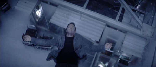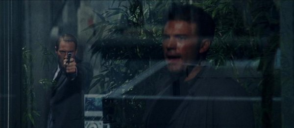 A l’image de cette banale note finale, le film reste marqué par cette contrariété entre une pure machinerie de studio pas très regardante sur les détails et un Woo réclamant une exploration émotionnelle par un travail en profondeur. Des sentiments ambivalents qu’exprime lui-même Woo. Car si il ne regrette aucunement cet exode américain lui ayant offert un formidable enrichissement technique, il se montre également exaspéré par une production où chaque décision fait l’objet d’interminables discussions au détriment du tournage. Une déclaration dévoilant des regrets qui peuvent être facilement décelés lorsque les propos des bonus du DVD contredisent le rendu même du film. Esthétiquement, Woo affirme désirer s’éloigner des mesures communes du genre où prédominent les teintes grises et métalliques. Or, Paycheck s’inscrit complètement dans ces tons sans saveur avec ses décors froids et en ciment. Les seuls passages un tantinet colorés proviennent de l’utilisation de la nature avec notamment le centre de recherche contenant des cultures botaniques. Encore une idée de qui d’après vous ? Au-delà du rafraîchissement visuel, de telles incursions ont bien sûr une importance que ce soit par rapport au développement de certains rapports (le personnage féminin est souvent entouré de plantes pour rappeler qu’elle est la source de vie du héros) ou pour amplifier la tension dramatique (la simulation d’un temps orageux dans le climax).