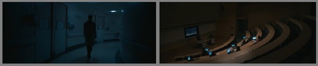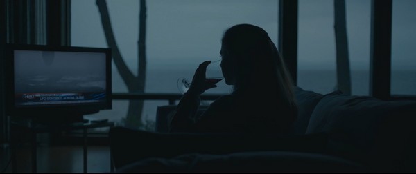 Cela nous mène au motif récurrent du film : les écrans que l’on retrouve à intervalle régulier et qui semblent même se démultiplier pour former finalement de véritables murs. Ils deviennent le principal outil de communication entre les différents partis, un intermédiaire qui devrait théoriquement créer du lien mais qui peine à remplir son rôle initial. Ces écrans permettent tout d’abord de laisser à distance le fil rouge de l’histoire et de se concentrer sur l’intime. On découvre l’apparition de vaisseaux extra-terrestres par la réaction des étudiants de Louise puis par son propre regard surpris. Cependant, on n’aperçoit pas le contenu de l’écran TV, ce qui catalyse notre curiosité. Les premières images que l’on apercevra sur la télévision de Louise se limiteront à un arrière-plan trouble.