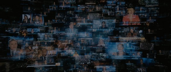Ainsi, on sait déjà tout du film sans en avoir conscience et alors que nous n’avons rien vu du lieu de l’action, nous comprenons intuitivement ce dont il retourne. Les nouvelles internationales apparaissent donc seulement par des intermédiaires : la radio dans la voiture, les écrans de télévision de l’Université, du salon de Louise ou encore du QG militaire. L’intensité et le chaos de ces événements sont marqués par des sources d’informations de plus en plus nombreuses, ce qui laisse imaginer la panique qui prend possession de la planète. Il est intéressant de noter que la réaction des populations et des médias se forme avant toute forme de connaissance, entraînant chute des marchés boursiers, émeutes, etc. D’ailleurs, on n’assiste pas non plus de manière directe à ces manifestations graduées mais on découvre le caractère contagieux de la peur puisque des militaires décident de poser des explosifs dans le vaisseau des heptapodes, motivés par leurs compagnes qui excitent leurs inquiétudes. Le travail des scientifiques, fondé sur l’induction, se veut méthodique et lent, il se heurte donc à l’affect public qui est par essence dénué de rationalité.