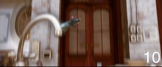 Comme pour souligner l’inévitabilité de ce basculement, Bird traite la chute en trois plans reprenant la structure précédemment posée. Un plan en contre-plongée (image 8), un plan en plongée (image 9) et un plan de côté rompant l’axe (image 10). L’enchaînement montre l’absence d’échappatoire de Remy qui va devoir passer d’un champ théorique à celui de la pratique.