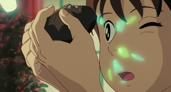 Enfin, et surtout, Kondô rétablit la notion de temps dans un cadre qui en est traditionnellement dépourvu, puisqu’on l’a dit, les contes n’existent que le temps de leur lecture. En quelques plans, Si tu tends l’oreille nous donne au contraire l’impression d’assister à un conte ancré dans le quotidien et qui poursuivra son existence bien après son générique de fin. Si vous tendez l’oreille, vous remarquerez d’ailleurs que le chant divin du début est progressivement interrompu par les sons de la modernité à mesure que la caméra se rapproche du sol, avant de reprendre sous la forme d’une chanson conforme aux standards de l’époque, signe manifeste d’une transition nécessaire de la temporalité isolée et abstraite des contes vers celle, diffuse et continue, du quotidien.