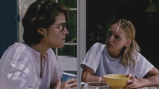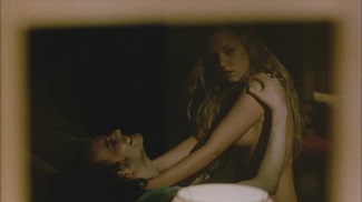 Qu’un cinéaste laisse à ce point-là les clés de son scénario à son audience, quitte à l’inciter à l’écrire lui-même pour y projeter ce qu’il veut, n’est pas sans risque. Pas besoin d’être un cinéphile forcené pour savoir à quel point le coup du cinéaste qui se défausse en disant que c’est à autrui de piger ce qu’il a voulu faire ou dire est le genre d’esquive foireuse qui se grille désormais en deux plans et trois raccords. A moins, bien sûr, de s’appeler David Lynch, lequel a toujours encouragé – y compris dans ses films les plus accessibles – la lecture cognitive et psychique du découpage narratif. Où se situe Ozon là-dessus ? Un peu à la frontière des deux principes : son découpage semble fait un peu à l’instinct ou à l’aveugle (on sent que le film resterait intact si l’ordre de certaines scènes était inversé), et en même temps, l’ensemble fait montre d’une stupéfiante maîtrise en raison du raccord de certaines scènes « fantasmatiques » à la suite d’un plan tout sauf anodin – du genre où Sarah s’endort sur un lit ou paraît soudain songeuse d’on ne sait pas très bien quoi. L’exemple le plus frappant parlera à tous ceux qui restent plus que jamais familiers de la diégèse lynchienne. Quatre plans qui se suivent comme un fil : Sarah se couche sur un oreiller, quelqu’un – on ne voit pas qui – ramasse quelques feuilles mortes sur la surface de la piscine avec un filet, une femme alanguie sur un transat tisse un trait d’union entre bronzette et branlette face à un mâle de plus en plus excité, Sarah se réveille brusquement sur son lit. Même principe, au fond, que celui qui régissait toute la structure narrative de Mulholland Drive, dont la lecture visant à raccorder un plan subjectif couché sur un oreiller à un réveil symbolisé par l’ouverture d’une boîte bleue était en soi la clé suprême qui suffisait à décoder tout le film. Nous voilà donc face à un autre prototype de ce cinéma psychique où le rêve et la réalité dialoguent moins qu’ils ne sont consubstantiels.